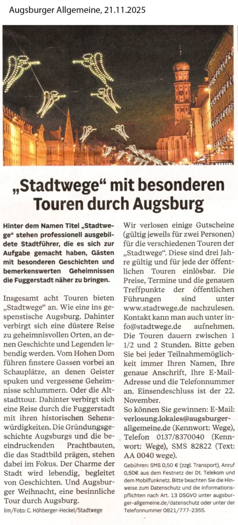 Stadtwege steht in Augsburg für außergewöhnliche Stadtführungen.